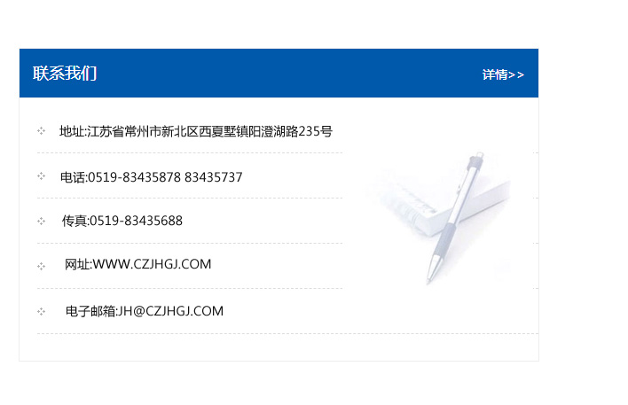 傳真:0519-83435688    郵編:213135    網址:WWW.czjhgj_com.gdtqdq.com    電子郵箱:JH@czjhgj_com.gdtqdq.com